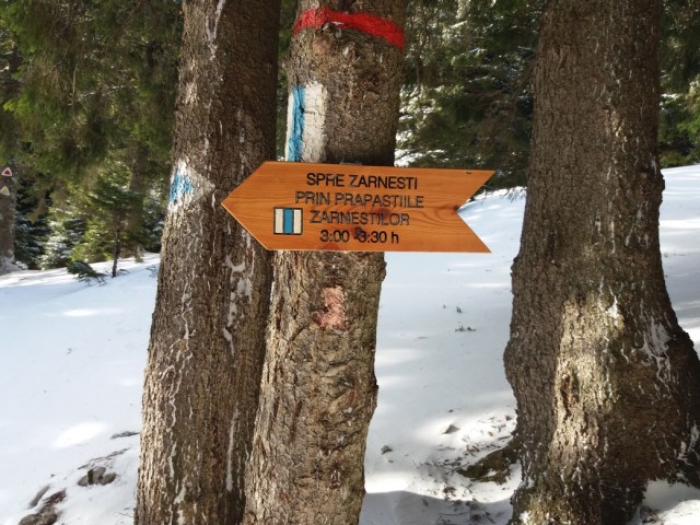 Dupa popasul de la cabana ne-am intors la Fantana lui Botorog in Zarnesti pe traseul marcat intai „banda albastra” apoi „cerc galben”. Am strabatut astfel spectaculoasele chei ale Zarnestilor