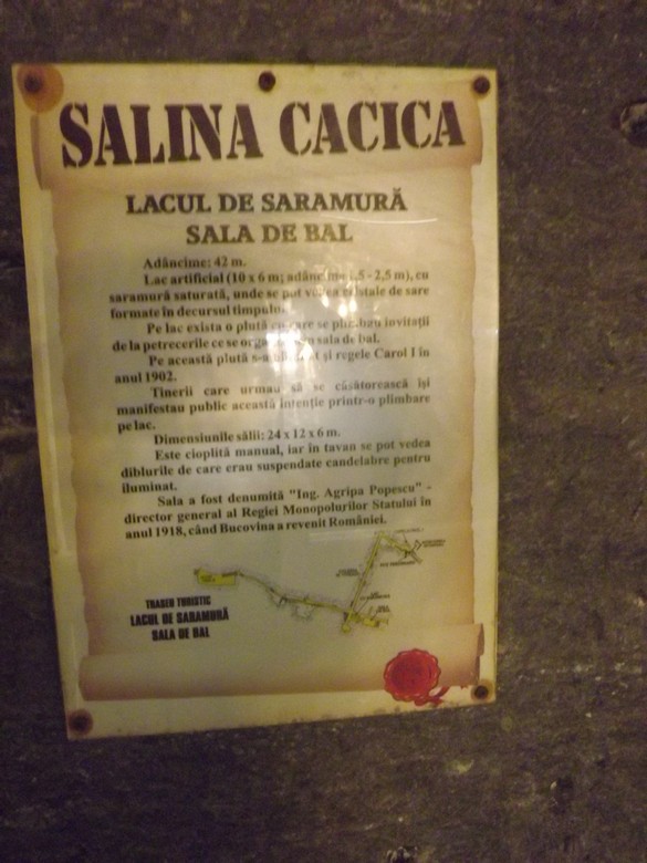 Continuand coborarea ajungem in Sala de Bal inconjurata de balcoane unde unde intalnim si un lac de sare cu o adancime de 2 m.