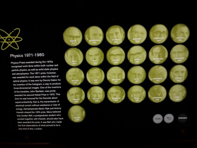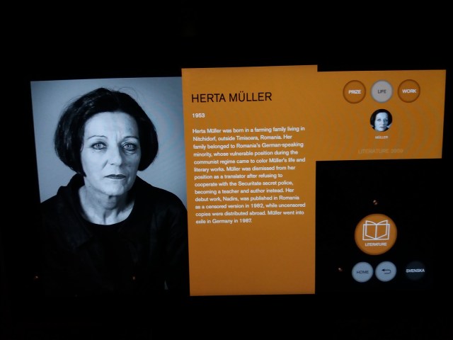 La intrarea in muzeu se gasesc mai multe monitoare touch screen, monitoare pe care poti vedea pe perioade de 10 ani laureatii premiilor Nobel pentru toate domeniile. La sectiunea dedicata scriitorilor unul din panourile informative amintesc de opera si viata scriitoarei Herta Muller.
