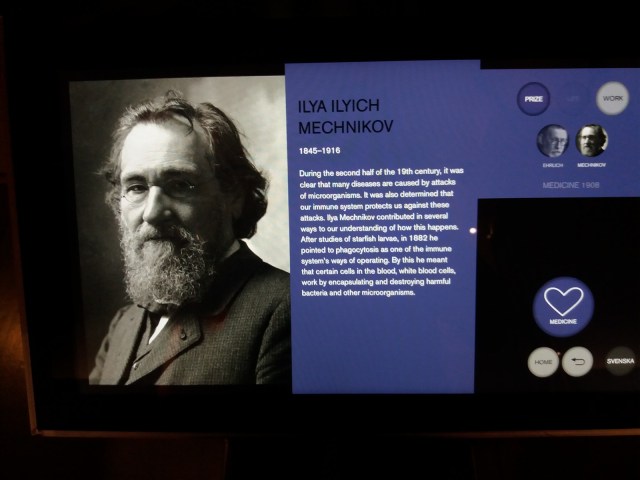 MUZEUL NOBEL – In piata centrala din Stockholm langa Catedrala se gaseste muzeul ridicat in cinstea inventatorului Alfred Nobel. Aici se gasesc expuse distinctiile si amintirea tuturor laureatilor premiilor Nobel. Ceea ce impresioneaza in acest muzeu este faptul ca aici sunt pomeniti si cele 4 personalitati de origine romana care au luat premiul Nobel de-alungul timpului. Alaturi de ei se gasesc si 3 persoanalitati nascute in Basarabia, dar ale caror realizari sunt trecute in contul rusilor si americanilor.