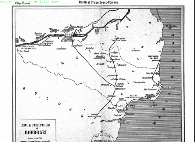 … harta preluata din lucrarea : Cetati si orase greco – romane in noul teritoriu al Dobrogei cu o harta si 22 ilustratiuni” de G.Popa Lisseanu, carte aparuta la Institutul de Editura si Arte Grafice „Flacara.” in anul 1914