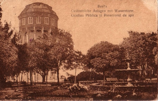 “Fântâna, proiectată în anul 1887 de inginerul M. Mironescu, a fost instalată în anul 1892, după finalizarea lucrărilor de alimentare cu apă de către firma scoţiană Glendfield et Co. Limmited. Este un obiect decorativ Art Nouveau, plasat în centrul unei compoziţii spaţiale şi integrat firesc în context. Are forma unei cupe etajate, cu marginile evazate spre exterior, cu patru figuri alegorice (putti), dintre care una poartă un snop de spice, sprijinindu-se pe soclul fântânii şi ţinându-se de axul ei. Inspirate de regnul vegetal, cupele se deschid asemenea petalelor unei flori; exteriorul lor este acoperit cu ornamente în relief, rezultate din repetarea motivului scoicii, compus din vrejuri de acant afrontate ce închid câte o palmetă; soclul este ornamentat cu o friză de palmete înlănţuite, fragmentată de triglife. Bazinul circular, cu diametrul de 6 m, accentuează, prin rotunjimea sa, principiul centralităţii căreia i se subordonează compoziţia” (Maria Stoica, Brăila. Memoria oraşului, Muzeul Brăilei. Editura Istros,Brăila, 2009)